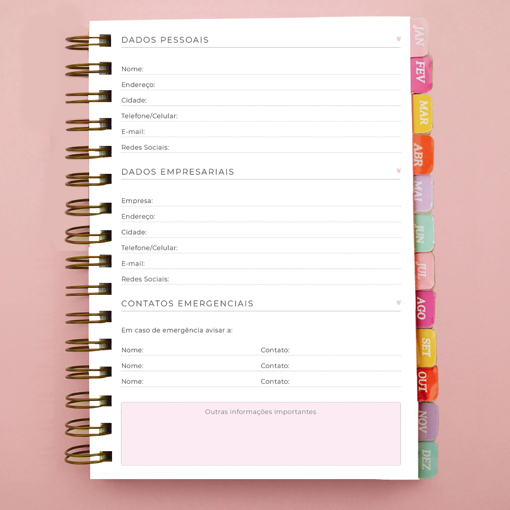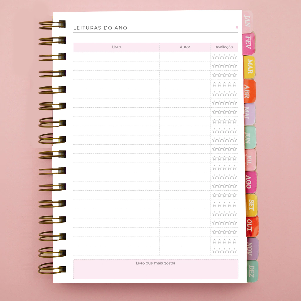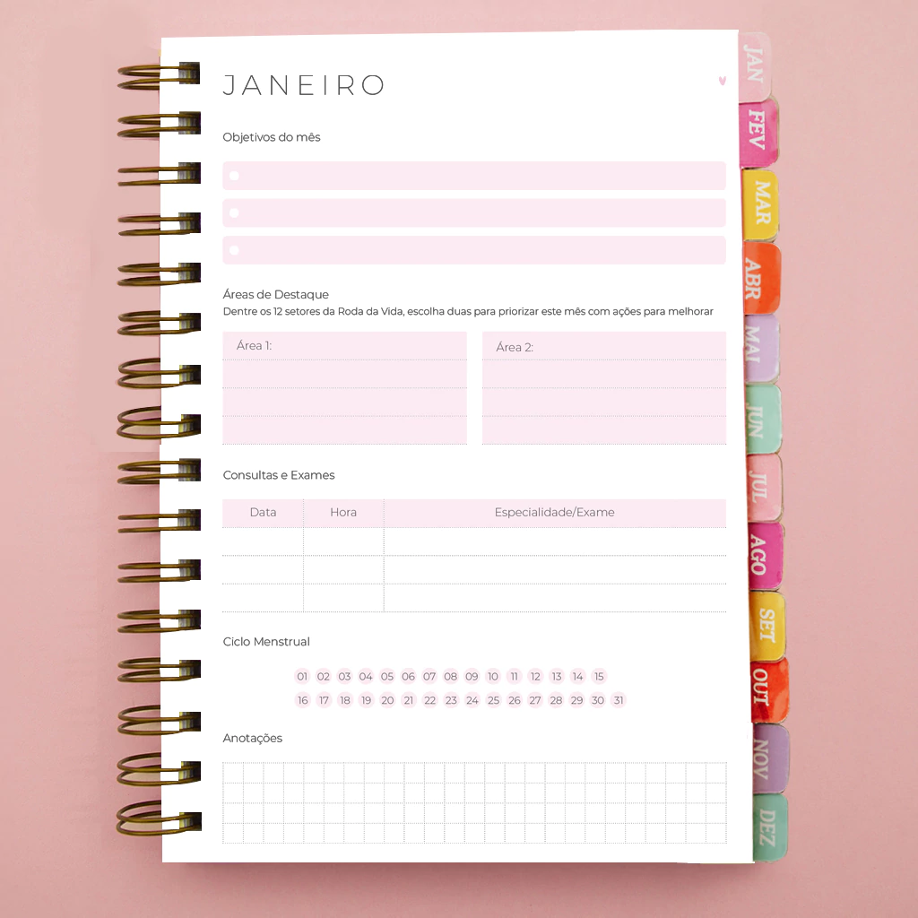 - 12 divisórias mensais com frases motivacionais - Papel off-set 120gr;